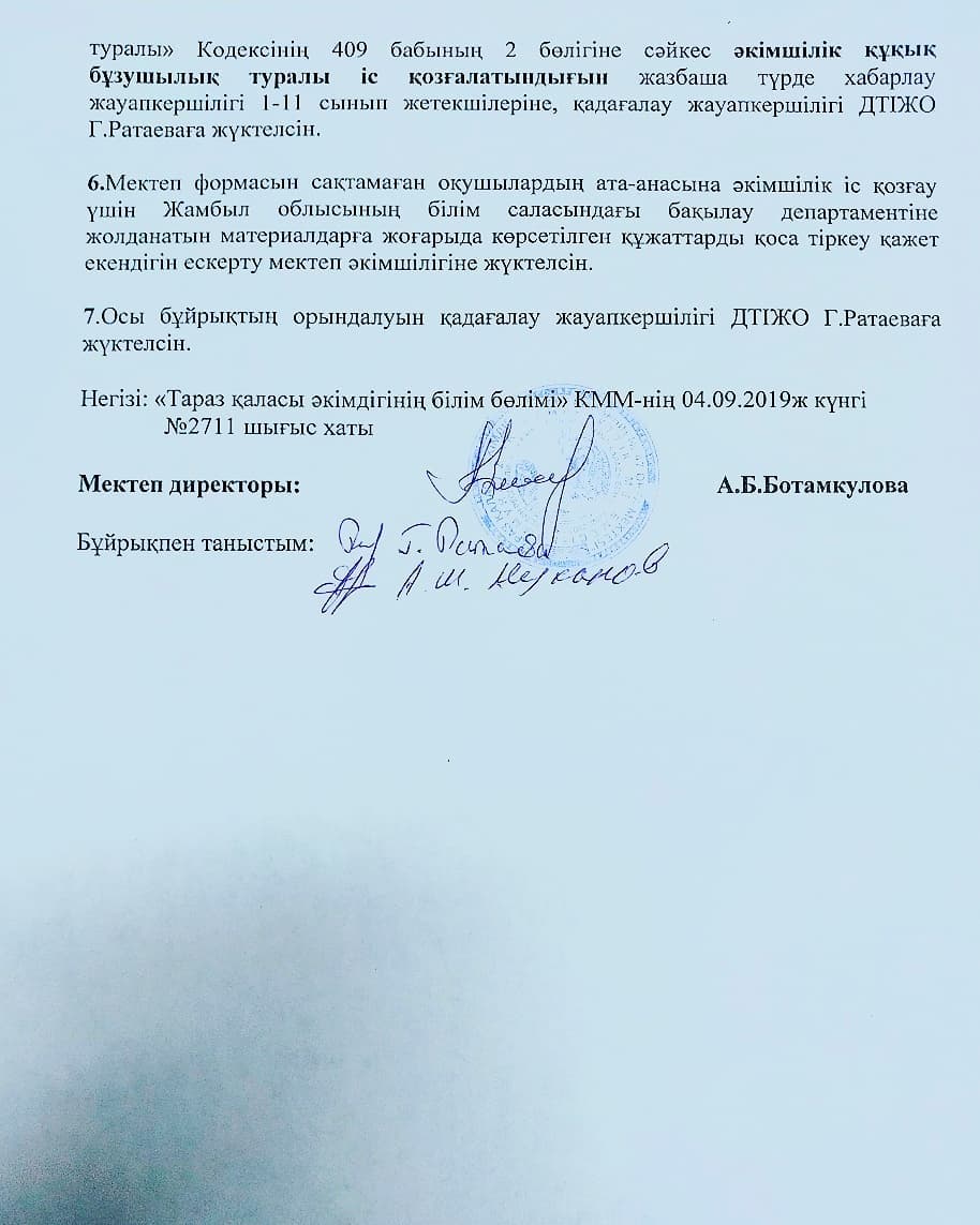 Міндетті мектеп формасына қойылатын талаптар туралы бұйрық. » СШ №47