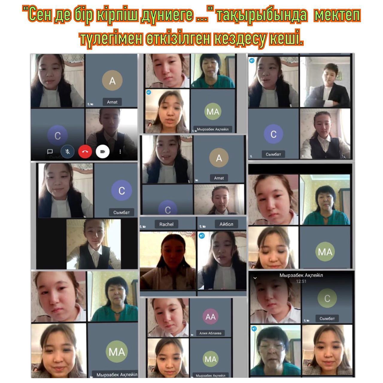 № 47 орта мектебінде "Мектепке тағзым" акциясы аясында 2020 жылдың 25 қараша күні күні 9 " а" сыныбының жетекшісі Әлия Аблаева оқушылармен табысты түлектерді қатыстыра отырып, "Сен де бір кірпіш дүниеге..." тақырыбында кездесу кешін онлайн форматта өткізді.