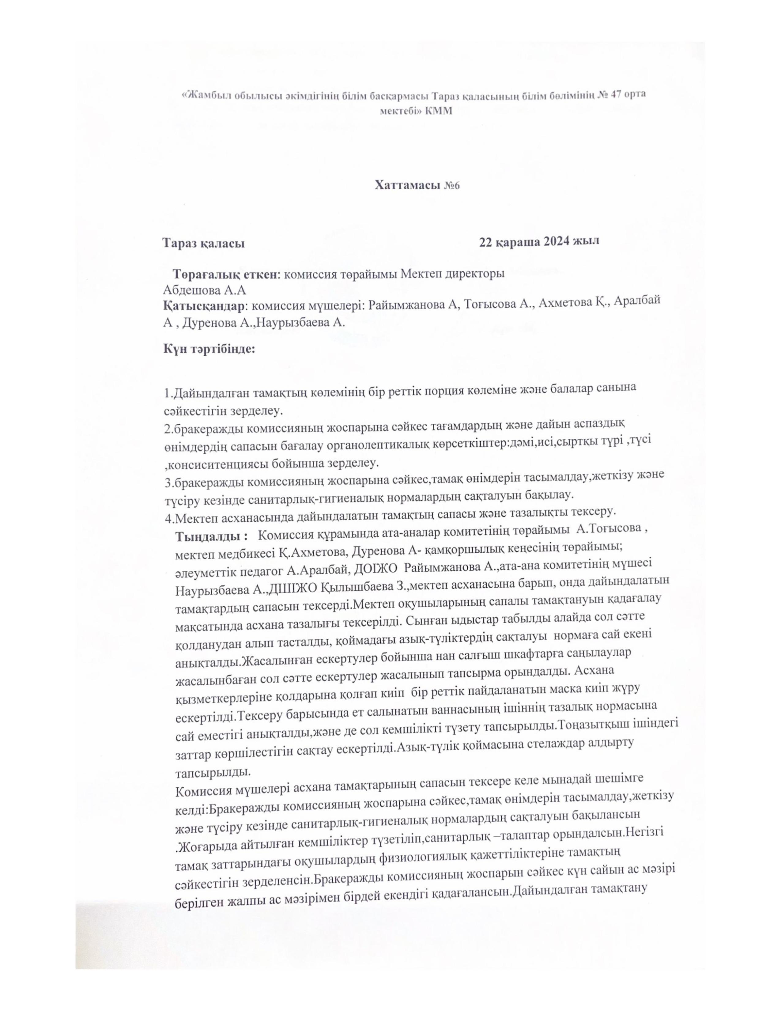 бракеражды комиссия 22.11.2024 күнгі тексеріс » СШ №47