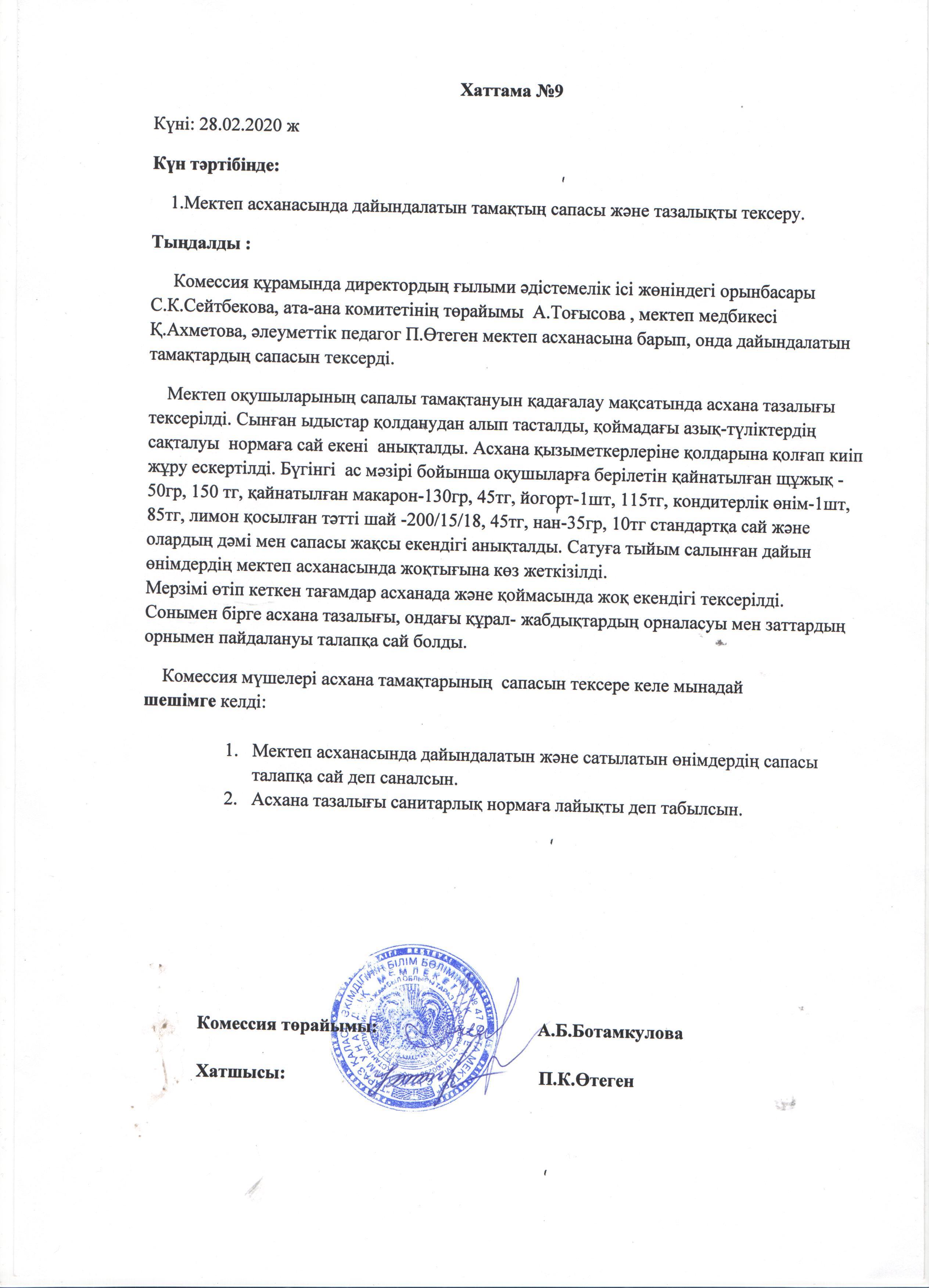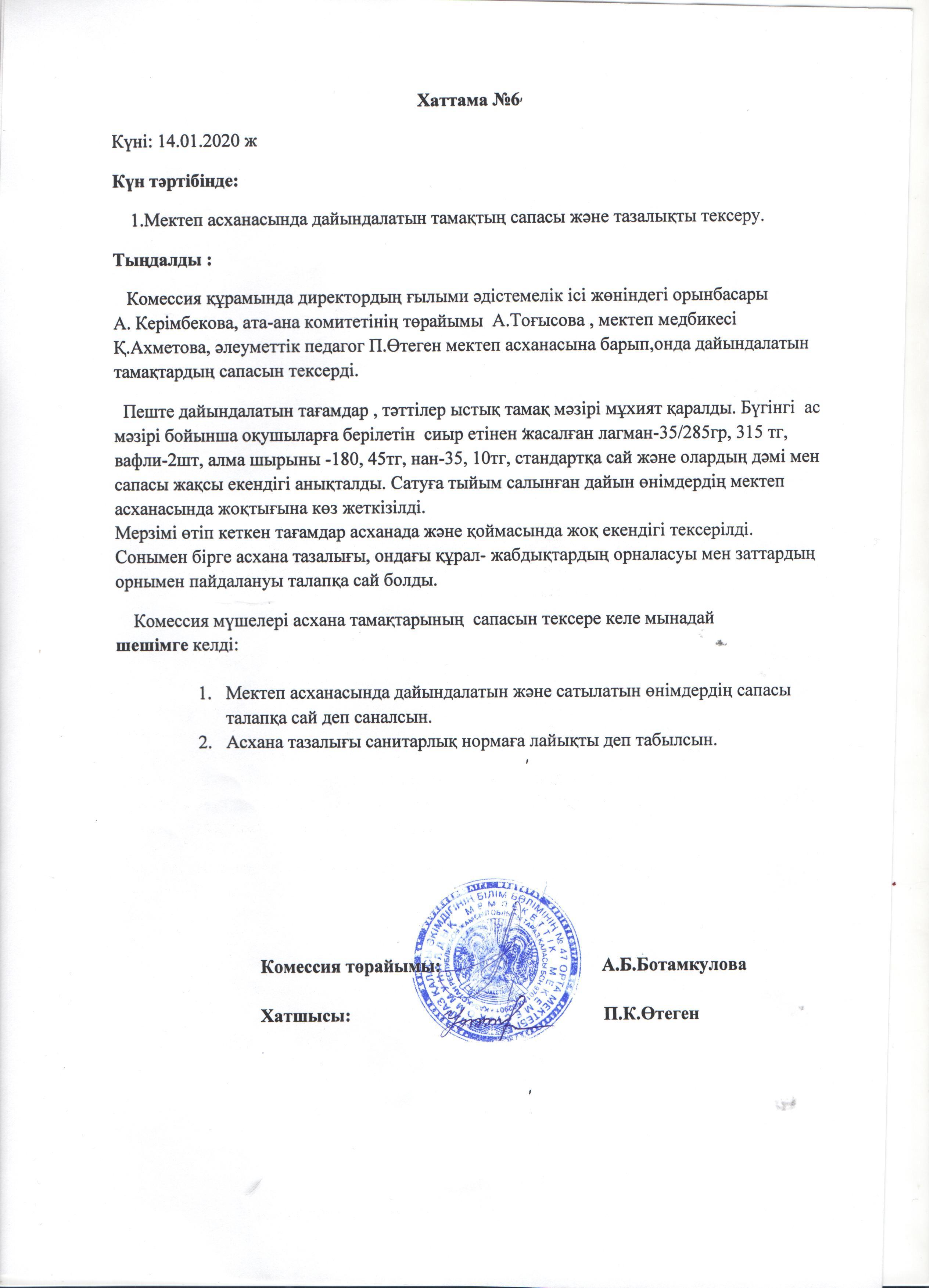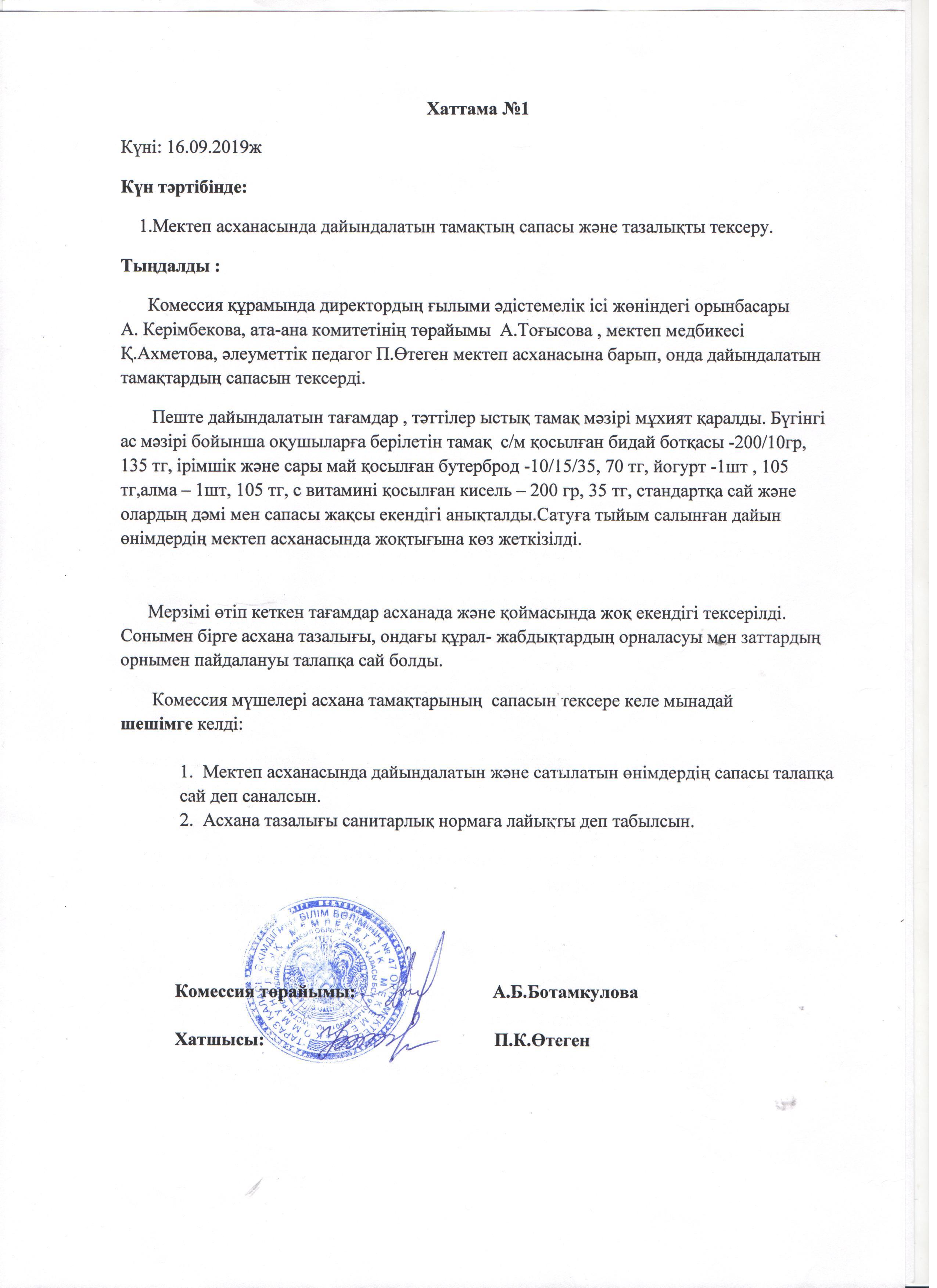 АКТ мен хаттама » СШ №47