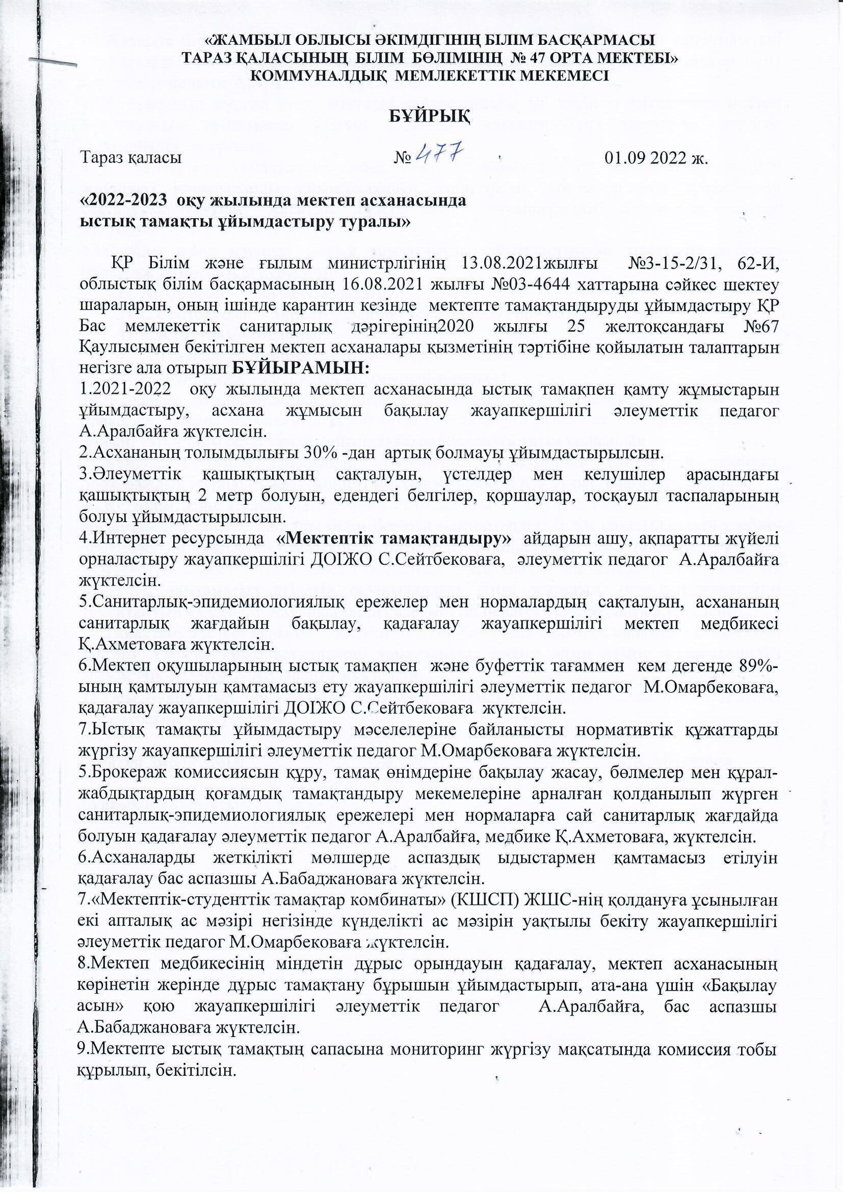 ыстық тамақты ұйымдастыру тегін тамақ » СШ №47