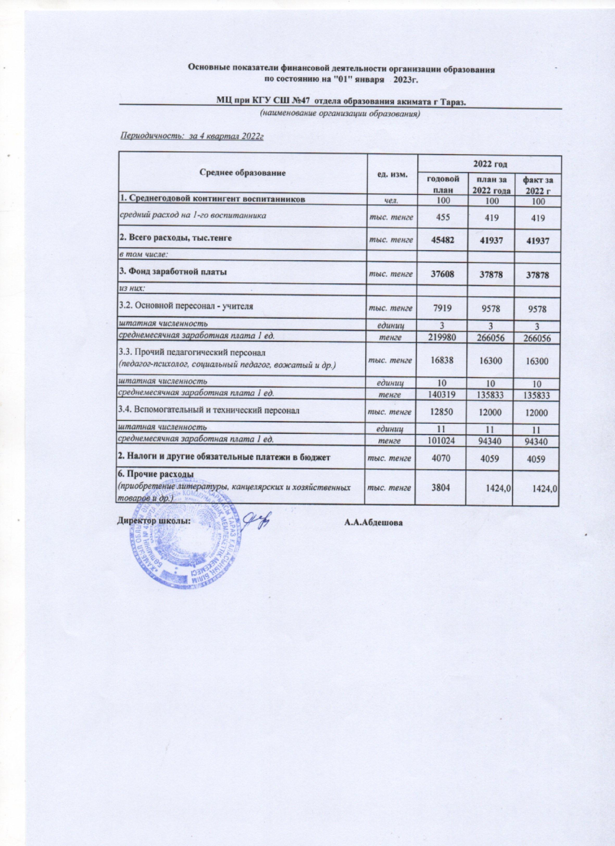 08 ақпан 2023 0 1 2 3 4 5 Основные показатели финансовой деятельности организации образования по состоянию на "01" января 2023г