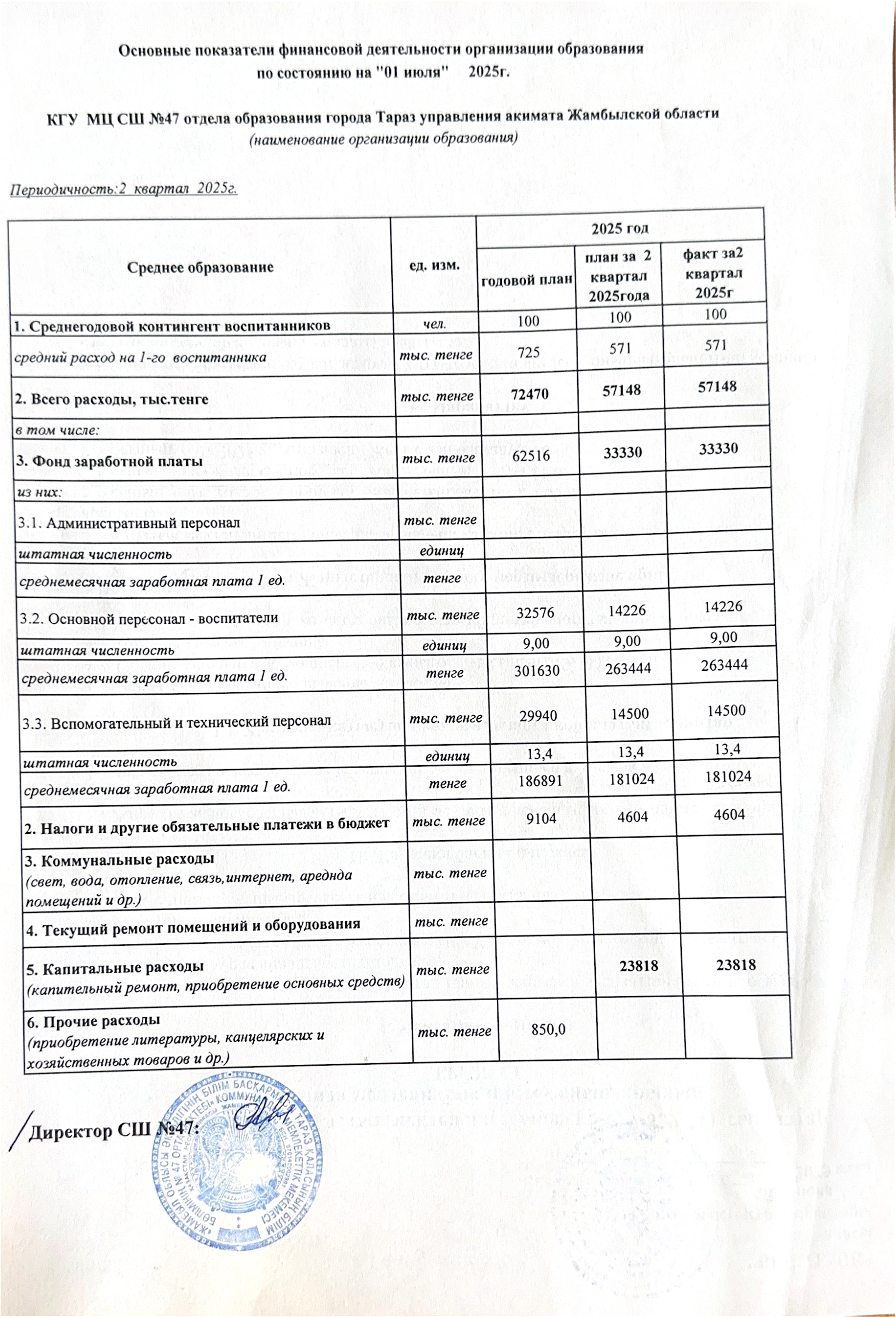 07 қазан 2025 0 1 2 3 4 5 Основные показатели финансовой деятельности организации образования (01.07.2025)