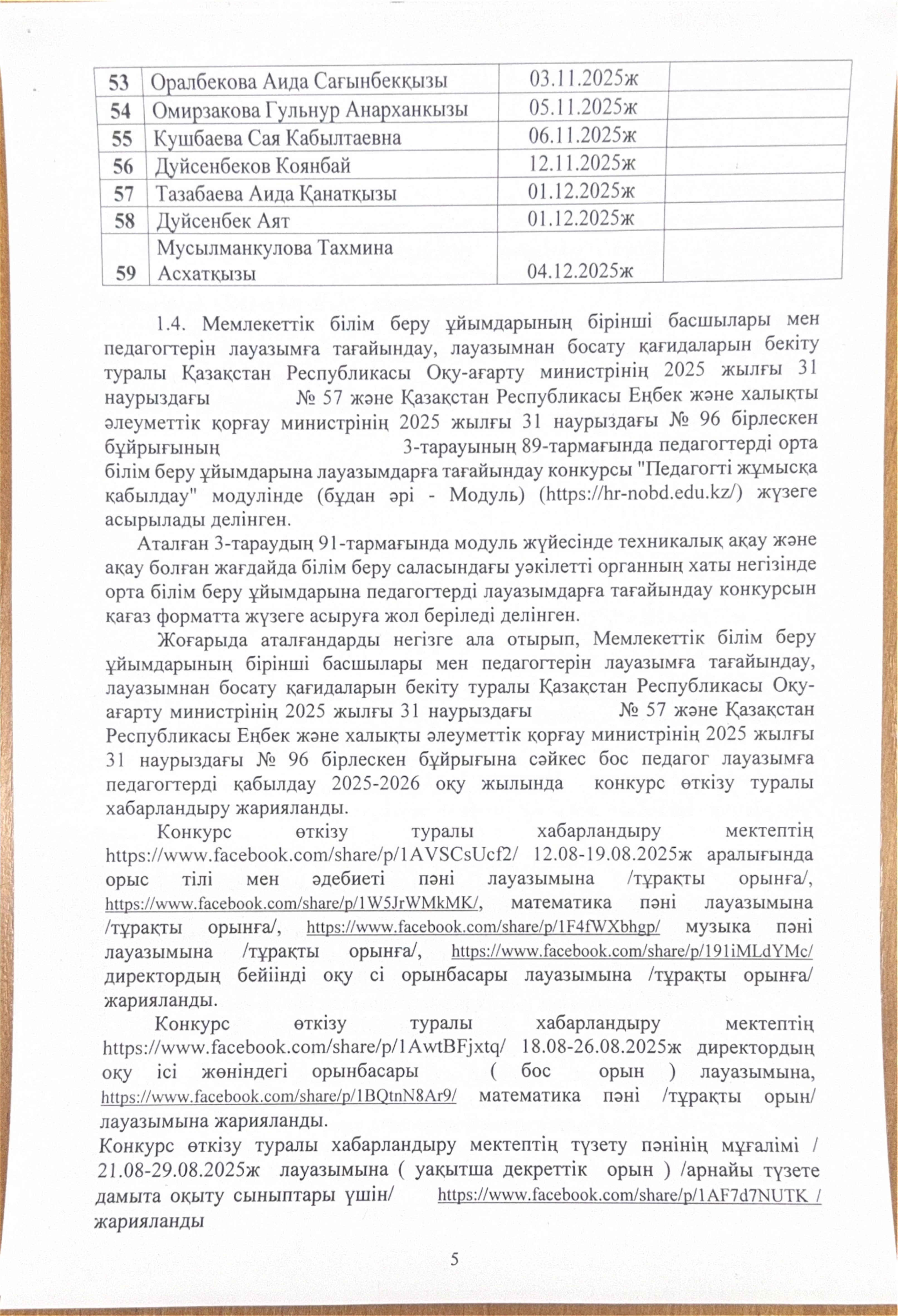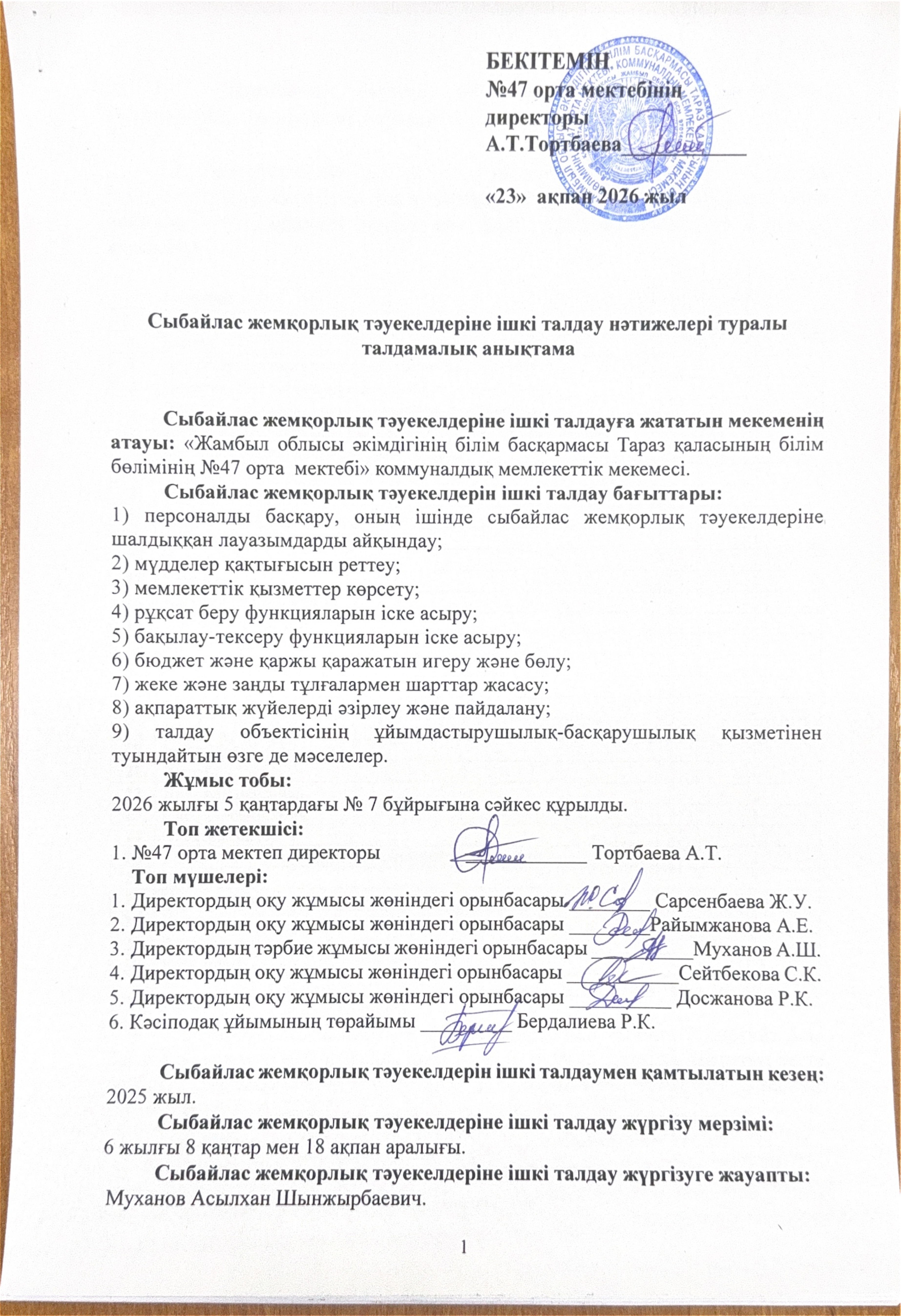 23 ақпан 2026 0 1 2 3 4 5 Сыбайлас жемқорлық тәуекелдерінің ішкі талдау нәтижелері туралы талдамалық анықтама