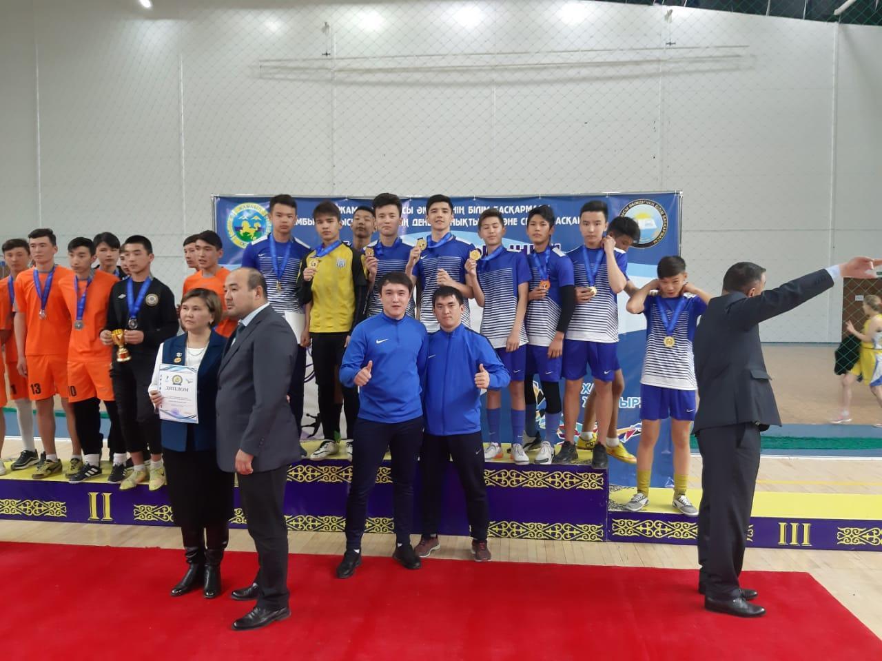 СШ №47 » Оқушыларға » Оқушылар жетістіктері » "Теңбіл доп" үйірмесі Жамбыл облысы Ұлттық мектеп лигасында Кіші футболдан 1 орын иеленіп Петропавл қаласында өтетін Республикалық жолдама ұтып алды. Жетекшілері Мырзахметов Медет Искаков Нажмидин