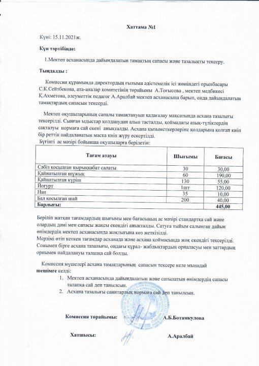 06 желтоқсан 2021 0 1 2 3 4 5 15.11.2021ж. Бракеражды комиссиясының Мектеп асханасында дайындалатын тамақтың сапасы және тазалықты тексеру жұмысы.