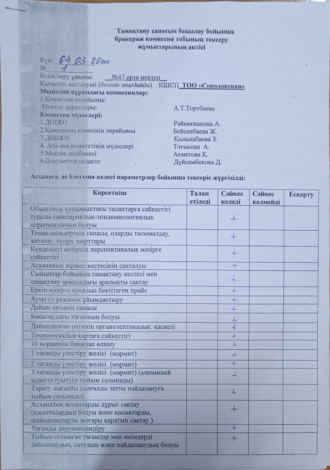 » » » Тамақтану сапасын бақылау бойынша бракераж