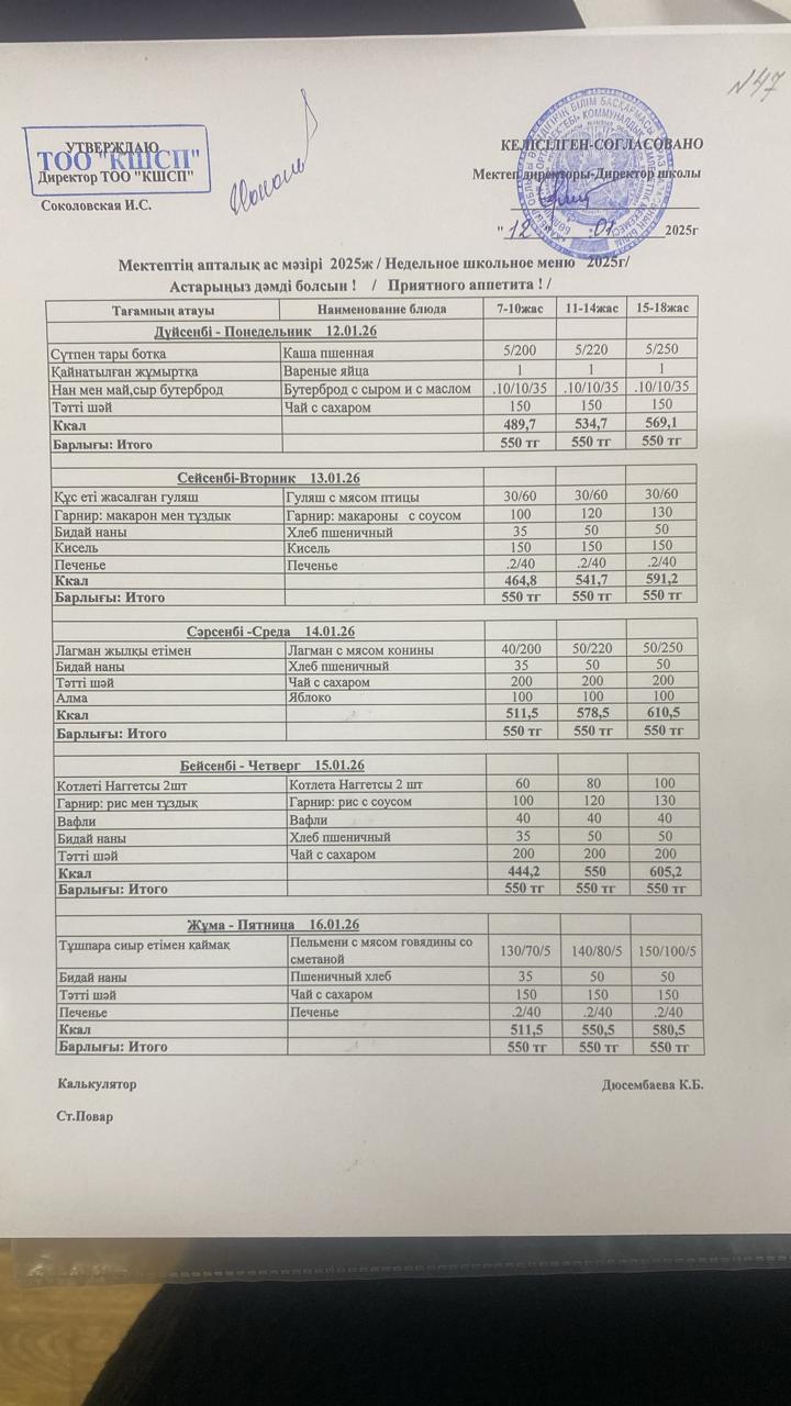 12.01.2026-16.01.2026ж апталық ас мәзір