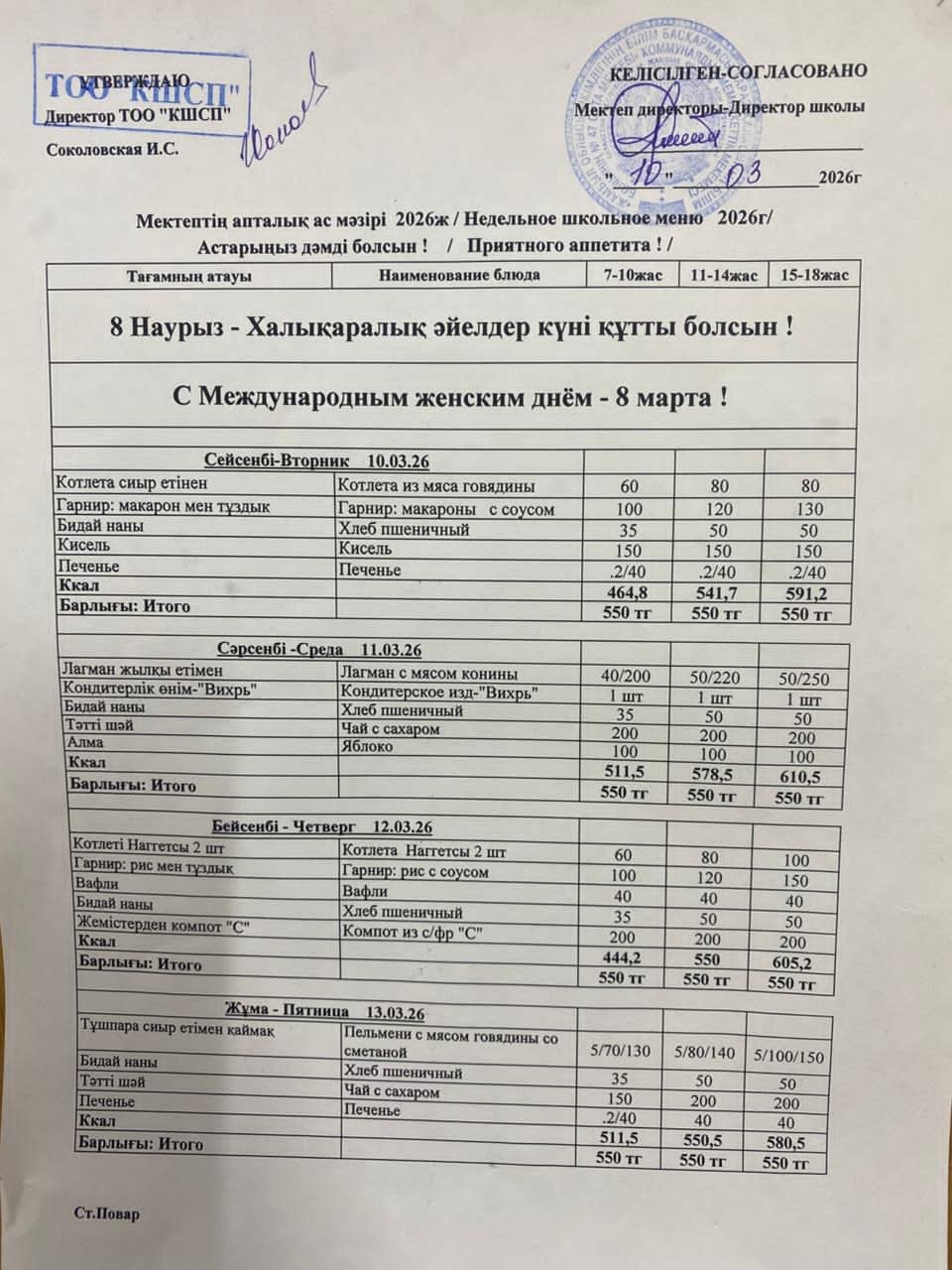 10.03.2026-14.03.2026ж апталық ас мәзір